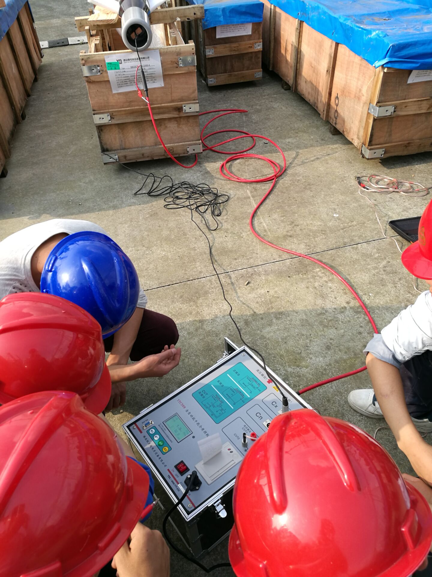 在現(xiàn)場(chǎng),李工首先對(duì)設(shè)備進(jìn)行了簡(jiǎn)單的檢查看看設(shè)備是否有損壞,之后開始了對(duì)設(shè)備的培訓(xùn)。此次培訓(xùn)的設(shè)備和內(nèi)容很多。李工對(duì)各項(xiàng)設(shè)備的使用,接線方法進(jìn)行了實(shí)地操作和詳細(xì)的講解,并對(duì)客戶提出疑問(wèn)的地方,現(xiàn)場(chǎng)給予細(xì)心,準(zhǔn)確的解答??蛻衾斫饽芰Ρ容^強(qiáng),在設(shè)備培訓(xùn)過(guò)程中有的同事就已經(jīng)基本掌握了設(shè)備的操作,隨后,又與客戶一起到現(xiàn)場(chǎng)對(duì)被試品進(jìn)行了試驗(yàn)。