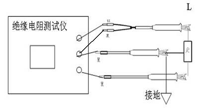 測(cè)量電氣產(chǎn)品的元件之間絕緣電阻時(shí),可將“L”和“E”端接在任一組線頭上進(jìn)行。如測(cè)量發(fā)電機(jī)相間絕緣時(shí),三組可輪流交換,空出的一相應(yīng)安全接地。(圖A)測(cè)量外殼接地起屏蔽作用的電器耐壓時(shí)如圖B。