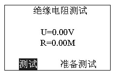 3. “R”選擇進(jìn)入,完成電壓選擇后進(jìn)入“絕緣電阻測(cè)試”: