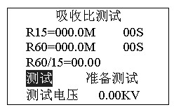 正在測(cè)試,若想停止測(cè)試,按確認(rèn)鍵停止測(cè)試。吸收比測(cè)試完畢后自動(dòng)計(jì)算比值,進(jìn)入是否保存提示。
