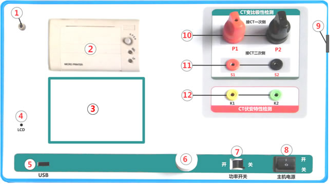 CT伏安變比極性綜合測(cè)試儀技術(shù)參數(shù)以及面板示意圖