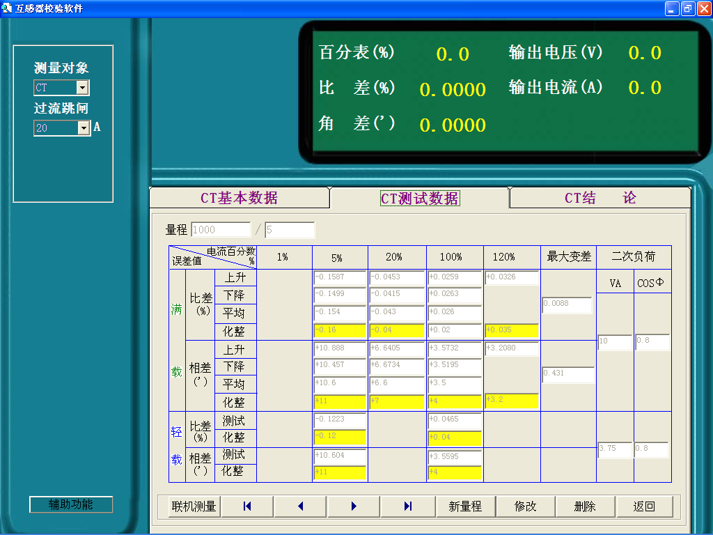 ⑵試數(shù)據(jù)可以通過人工錄入,也可調(diào)用本公司一體化校驗(yàn)裝置的測試數(shù)據(jù),實(shí)現(xiàn)互感器校驗(yàn)、管理一體化;