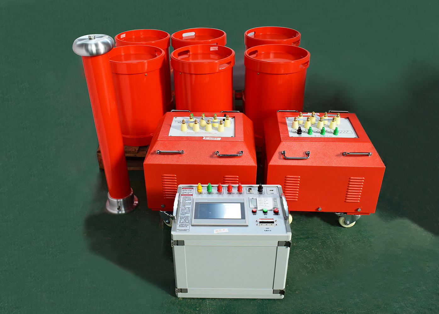 按 “變頻電源→勵(lì)磁變壓器→串聯(lián)電抗器→被試電纜→電容分壓器→接地” 的順序,將所有設(shè)備串聯(lián)成閉合主回路;同時(shí)把電容分壓器的電壓信號(hào)接入變頻電源(用于實(shí)時(shí)監(jiān)測(cè)電壓),且所有設(shè)備外殼、電纜非試驗(yàn)相均需可靠接地(接地電阻≤4Ω),接線(xiàn)后需雙人交叉核對(duì),避免錯(cuò)接、漏接。
